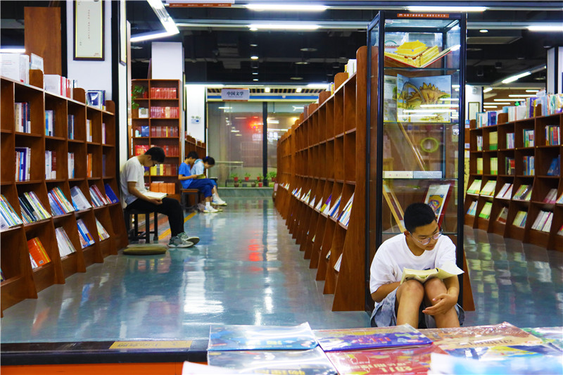 7月6日晚,南阳市卧龙区梅溪沙生活书店里,青少年们看书、听课、学习陶艺制作等,乐享知识带来的快乐。