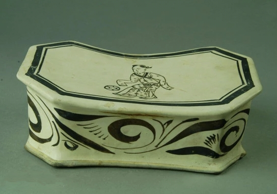 看这件白釉黑彩蹴鞠图瓷枕上,连梳着小辫儿的孩童都专心致志地玩着,仿佛在苦练颠球运球的技术,预备和小伙伴们一较高低,他快乐的身影,正是宋代社会风貌和人文精神的具象体现。