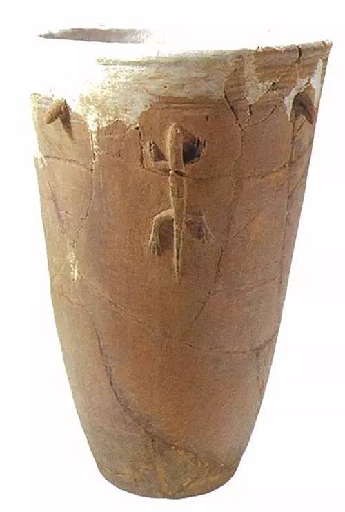瓮棺葬是仰韶时期流行过的一种丧葬习俗,可以简单理解为用瓮或者罐等陶器作为葬具,前期使用者儿童居多。壁虎纹陶缸便是此时的葬具之一,壁虎尾巴具有断而复生的特点,试想失去年幼孩子的父母,用日常陶器将孩子尸骨埋在居室附近,并精心制作壁虎形装饰,祈愿夭折的孩子能再次转生到自己家中。可怜天下父母心,丧子之痛凝成的悲伤眼泪,打湿了千百年来数不尽的父母衣襟。