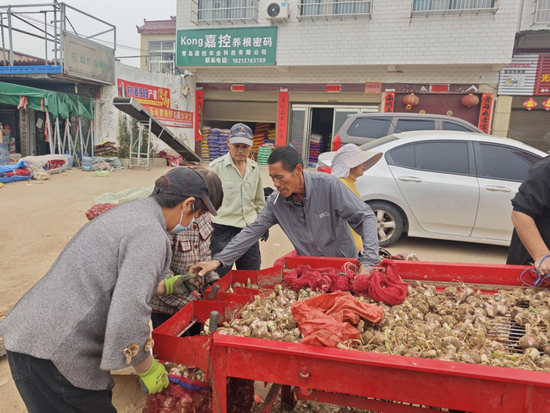 江苏邳州客商王凯说:“我是来自邳州的客商,5月3号开始来这边收购,现在已经收购了10车左右。每年这个时候我都过来,杞县大蒜品质非常好,深受市场和客户的欢迎。”