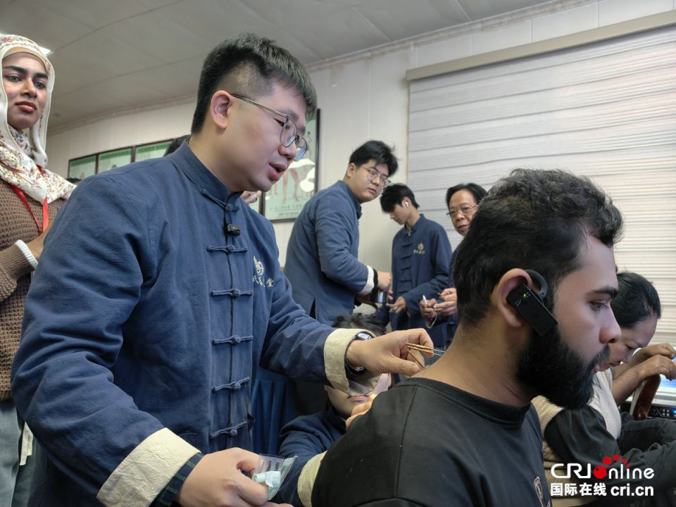 在体验了针灸、拔罐、葫芦灸等一整套中医适宜技术套餐后,来自摩洛哥的艺诗则是兴奋地跟家人分享了这一经历。“我非常喜欢中国文化,这次我体验了针灸、拔罐和葫芦灸。我给我的妈妈分享了拍摄的视频,她对我这次的经历很感兴趣,也想以后有机会跟我一起再来体验。中医值得推荐给更多人来体验。”她说。
