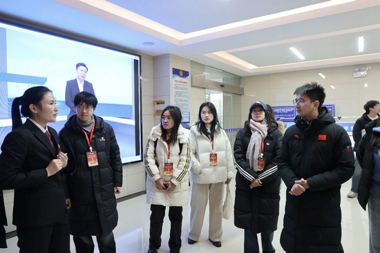 在法院工作人员的引导下,社会实践团成员参观了诉讼服务中心,详细了解一站式多元解纷和诉讼服务体系建设情况,现场体验智慧法院便民服务设施。