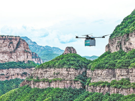 林州市石板岩邮政支局无人机投递快件。河南日报资料图片