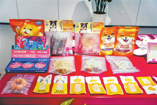 中誉宠物食品(漯河)有限公司生产的各类宠物食品。 受访者供图